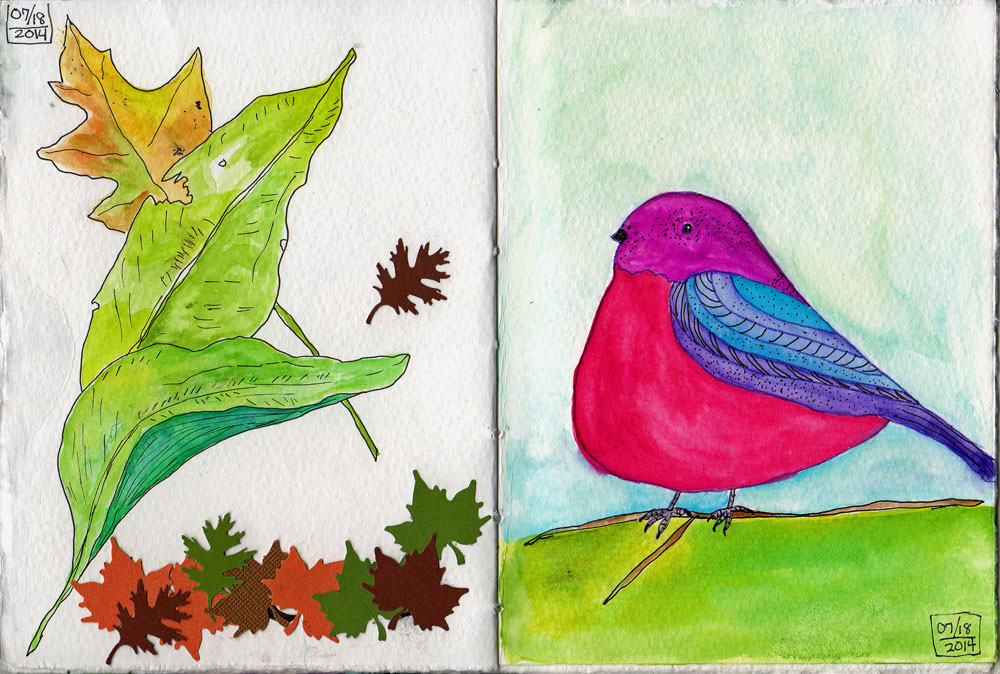I keep on sketching and painting in my sketchbook that I made for my Sketchbookery class. This is a page from that journal.